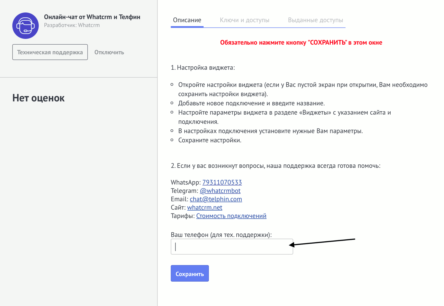 Чат для сайта от Whatcrm подключается в течение 10-15 минут.